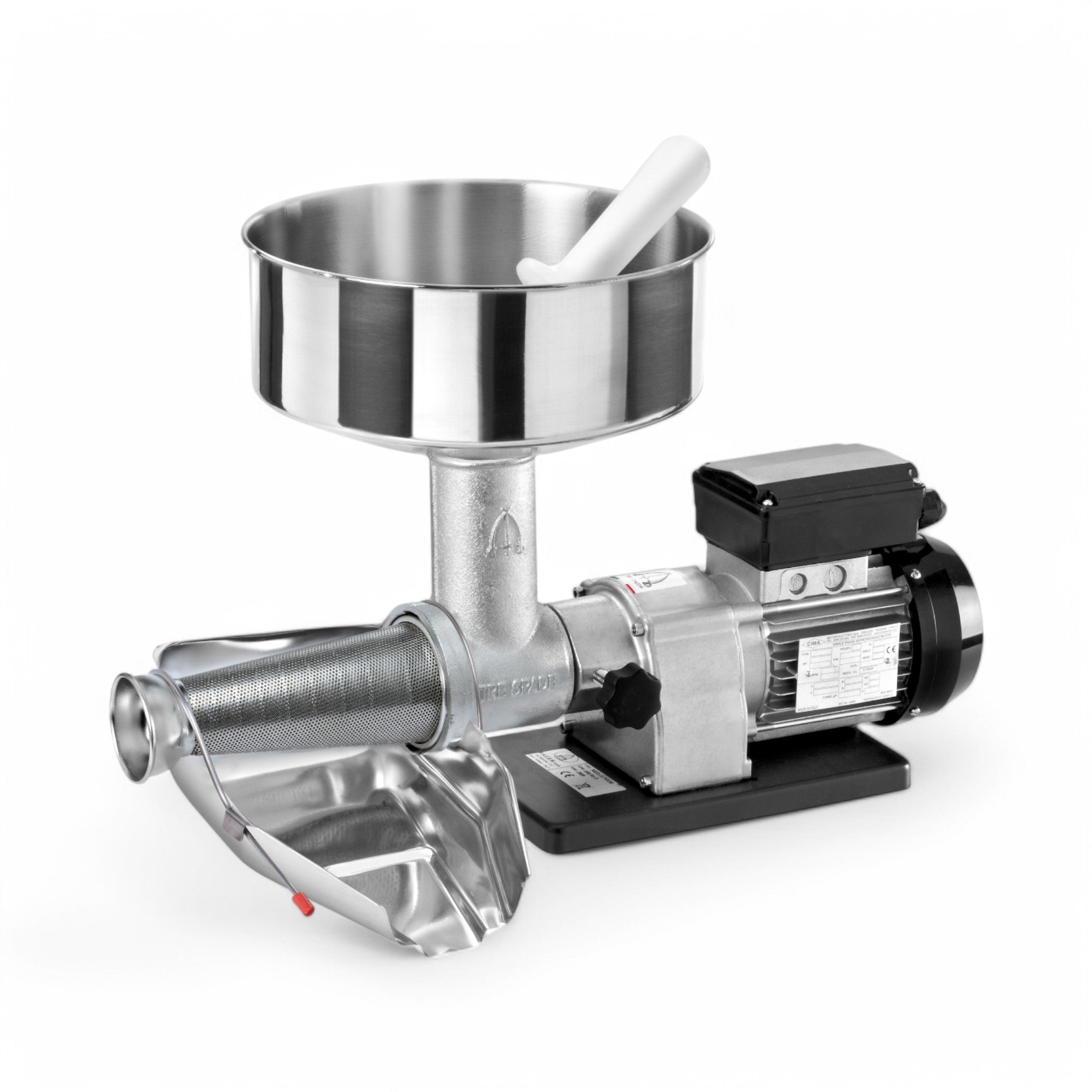 Robusto e affidabile, MED JUNIOR è dotato di corpo in ghisa stagnata, tramoggia e collettore in acciaio inox, e un filtro in acciaio inox con fori da 1,5 mm, che garantisce una passata perfetta, liscia e priva di semi. L’elica in nylon certificato per uso alimentare e il sistema di smontaggio rapido assicurano una pulizia semplice e immediata dopo ogni utilizzo.