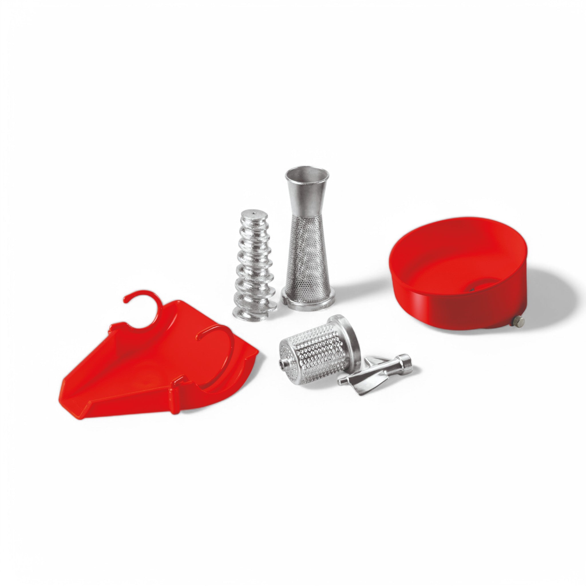 Le Kit Presse-tomates et Coupe-légumes Tre Spade est l’accessoire indispensable pour transformer rapidement votre hachoir manuel TC 8 en un outil de cuisine multifonction polyvalent. Non seulement pour des coulis de tomates authentiques, mais aussi pour préparer facilement sauces, confitures, purées de légumes, fromages râpés et fruits frais, directement chez vous.