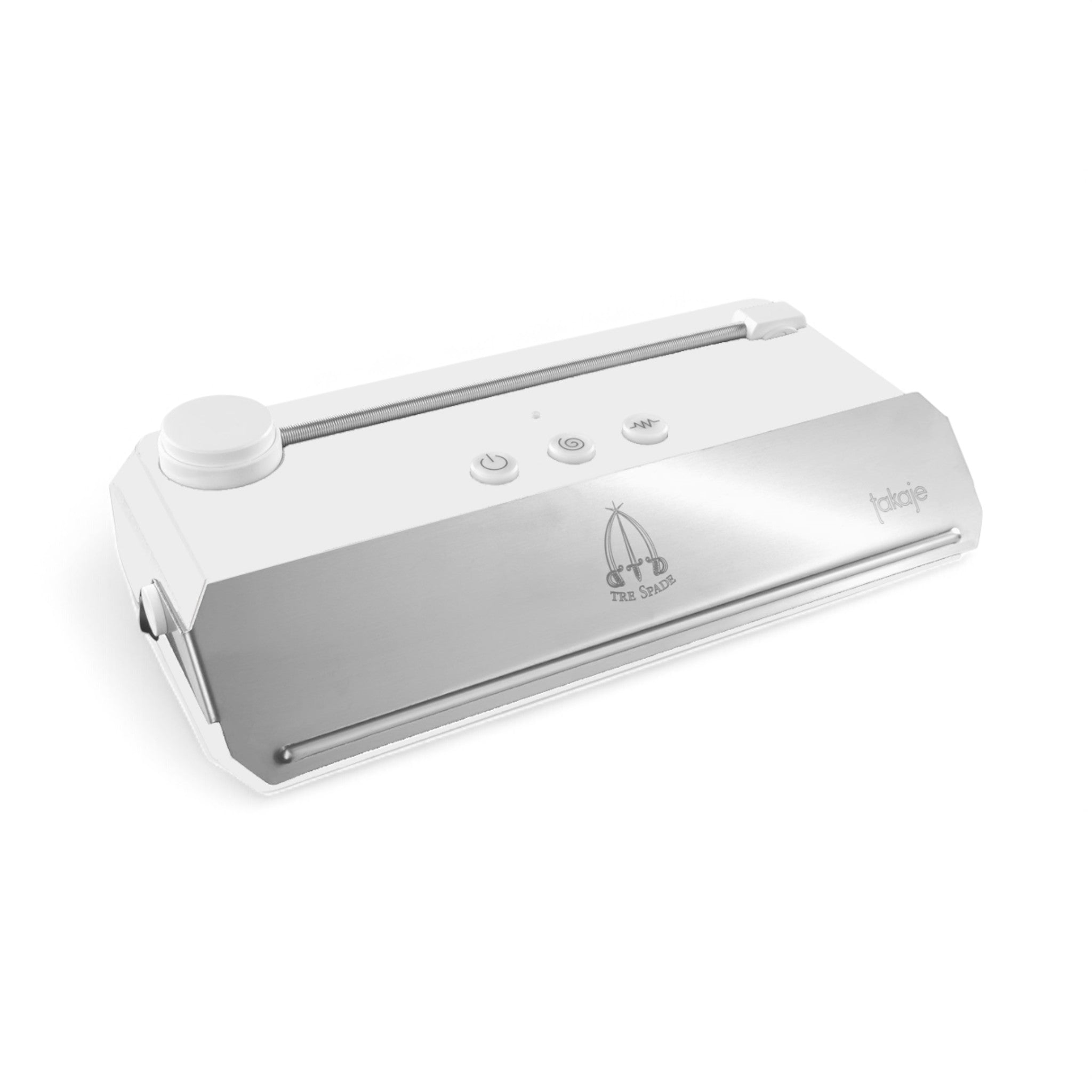 La Conditionneuse sous vide TAKAJE blanche de Tre Spade représente une révolution dans le monde de la conservation alimentaire. Grâce à son système unique et breveté, elle permet de conditionner sous vide non seulement dans les sachets traditionnels, mais aussi dans n’importe quel bocal en verre avec couvercle métallique, transformant des contenants ordinaires en outils efficaces pour prolonger la fraîcheur de vos aliments.