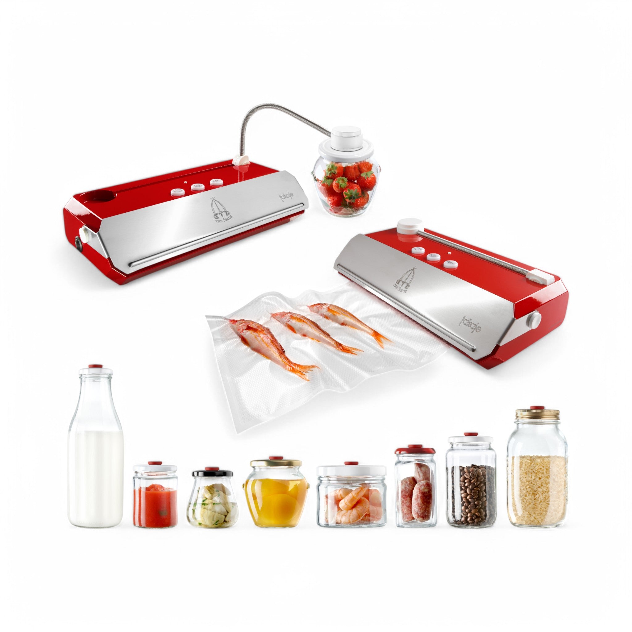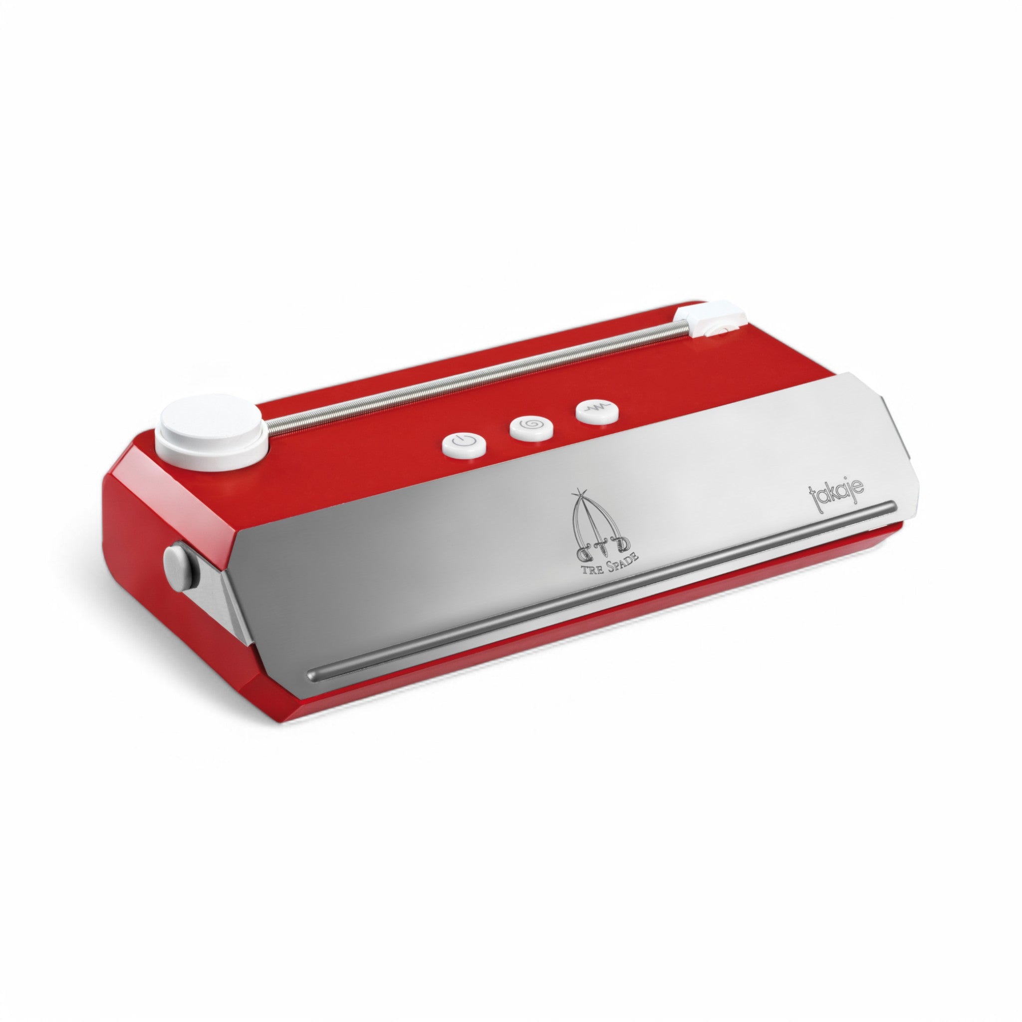 La Conditionneuse sous vide TAKAJE rouge de Tre Spade représente une révolution dans le domaine de la conservation alimentaire. Grâce à son système unique et breveté, elle permet de conditionner sous vide non seulement dans les sachets traditionnels, mais aussi dans n’importe quel bocal en verre avec couvercle métallique, transformant des contenants ordinaires en solutions efficaces pour prolonger la fraîcheur de vos aliments.
