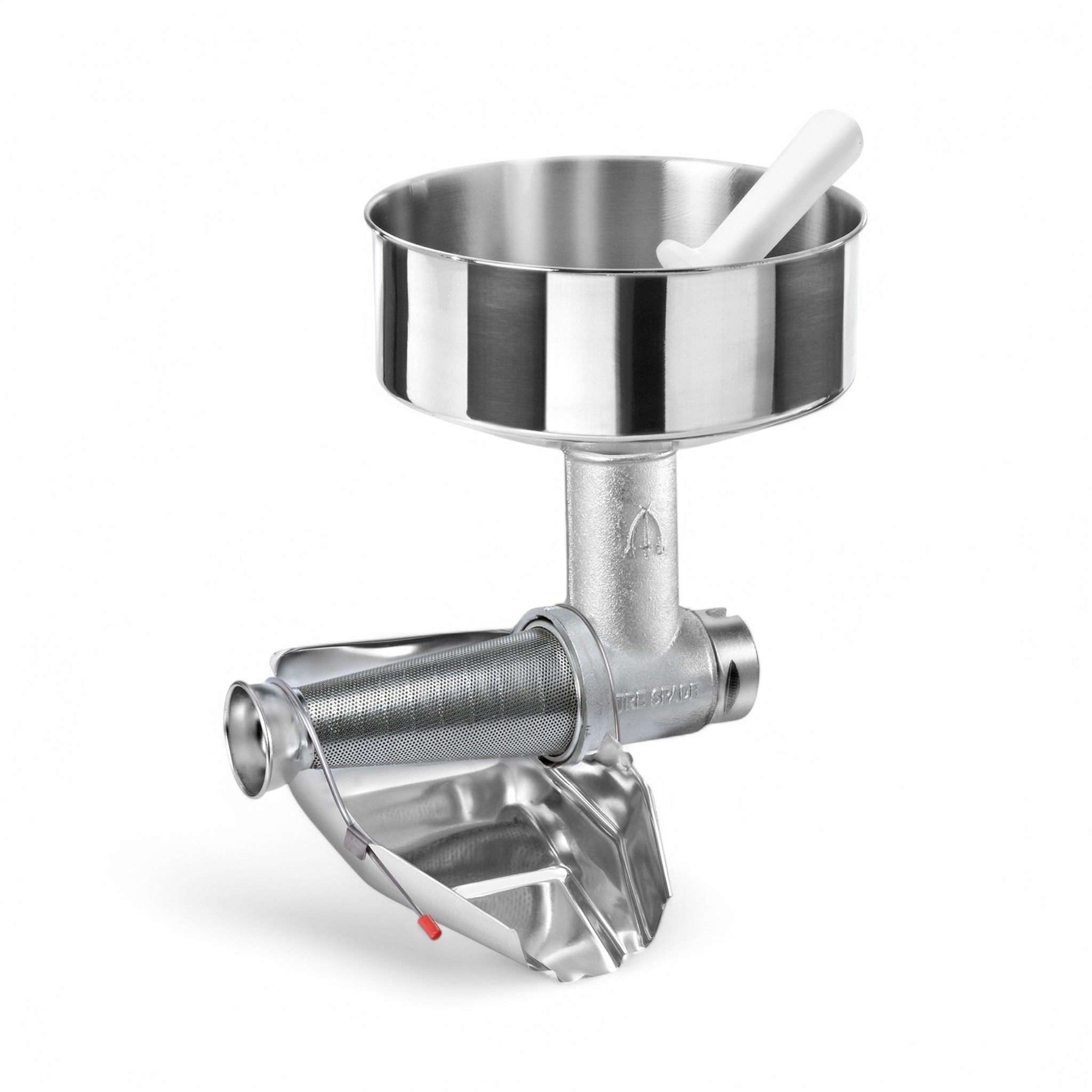 Le Kit Presse-tomates BIG de Tre Spade est l’accessoire parfait pour transformer rapidement vos hachoirs électriques Tre Spade de tailles 12, 22 et 32 en une puissante machine pour réaliser la passata de tomates directement chez vous.