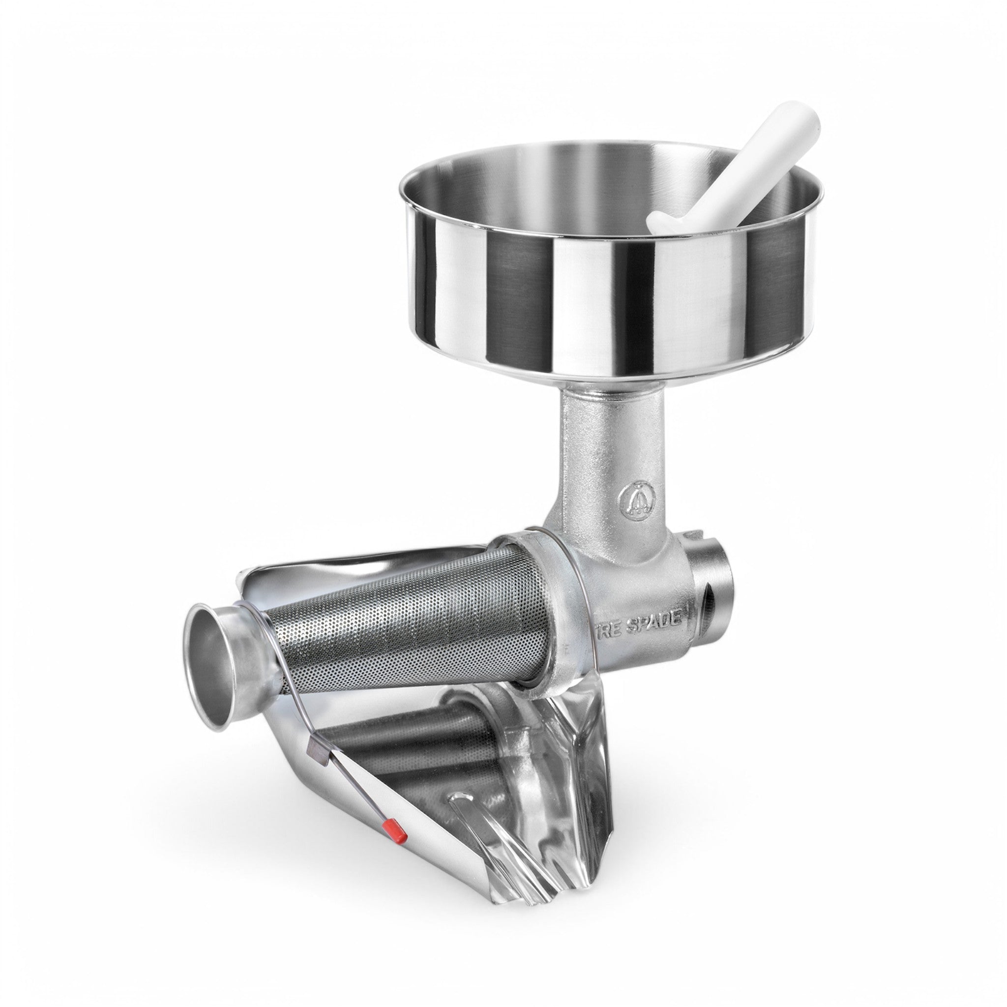 Le Kit Presse-tomates MED de Tre Spade est l’accessoire parfait pour transformer rapidement votre hachoir électrique Tre Spade TC 8 ou TC 12 en un efficace presse-tomates domestique de taille intermédiaire (taille 4). Idéal pour ceux qui souhaitent préparer facilement des coulis authentiques, des sauces fraîches et des conserves maison, ce kit est adapté aux quantités moyennes de tomates, offrant toujours des résultats impeccables.
