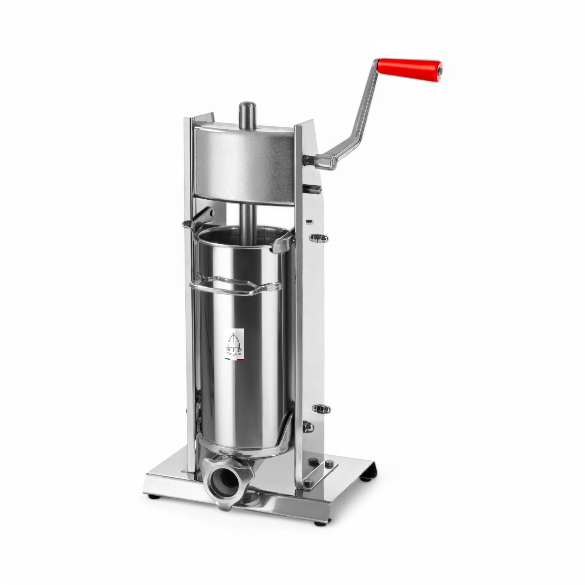 Le poussoir vertical MOD 5V DELUXE en acier inox 5 L de Tre Spade est conçu pour offrir une qualité supérieure, une grande robustesse et une utilisation pratique, le tout dans un format vertical qui permet de gagner de la place sur le plan de travail. Parfait pour les passionnés, chasseurs et artisans charcutiers, ce poussoir garantit des résultats impeccables, même avec des préparations très souples ou traditionnelles.