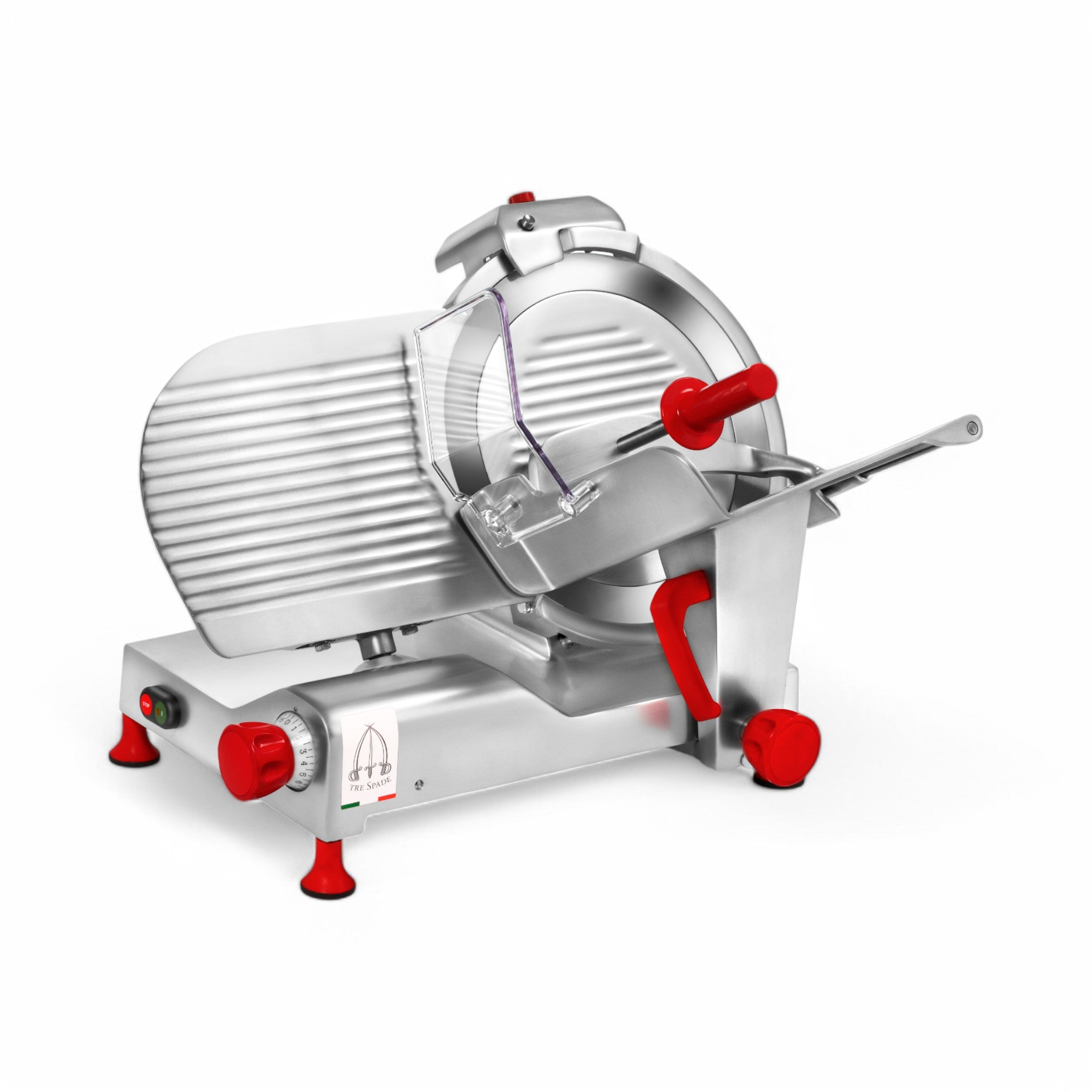 La D-350 PRO Tre Spade est la trancheuse professionnelle la plus grande et la plus puissante de la gamme, conçue pour garantir des performances élevées, de la robustesse et de la précision, même dans des contextes de travail intensifs tels que les restaurants, les charcuteries-traiteurs et les laboratoires alimentaires.