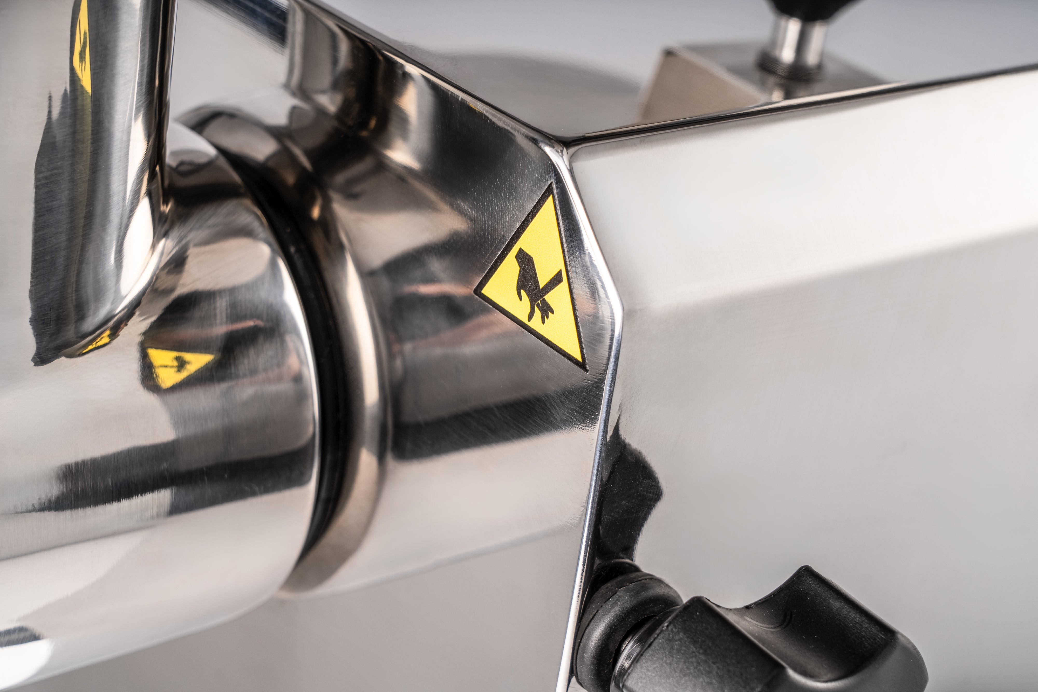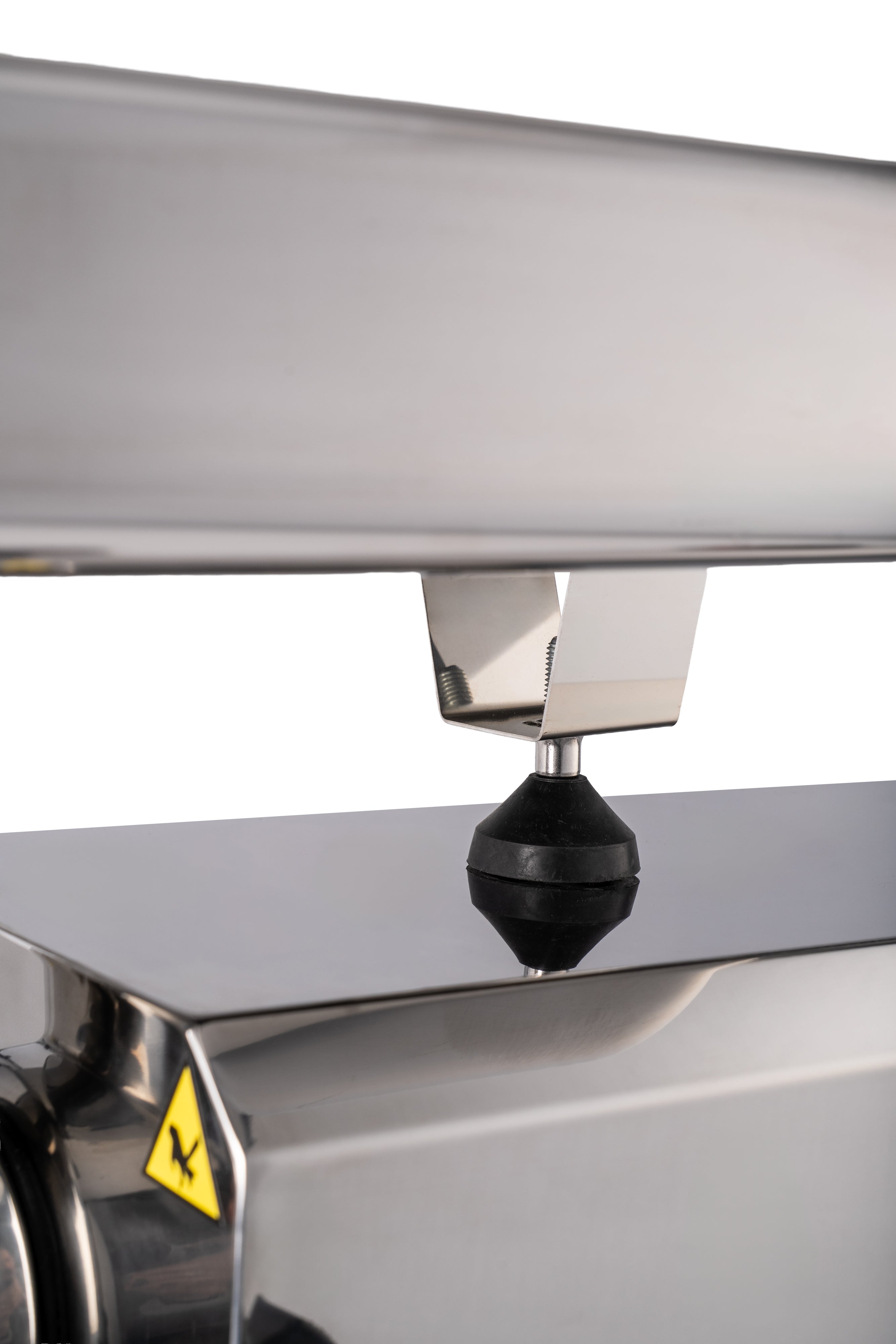 - Stor tratt i rostfritt stål integrerad med kroppen, utrustad med fingerskydd i tråd