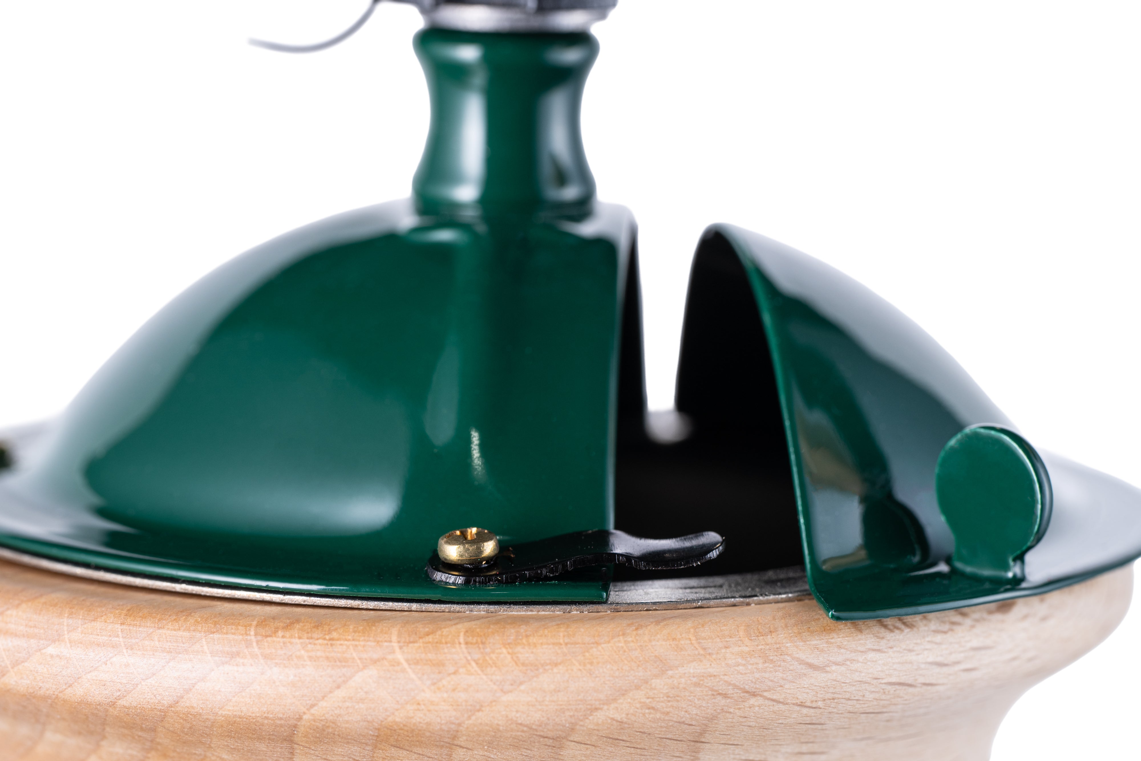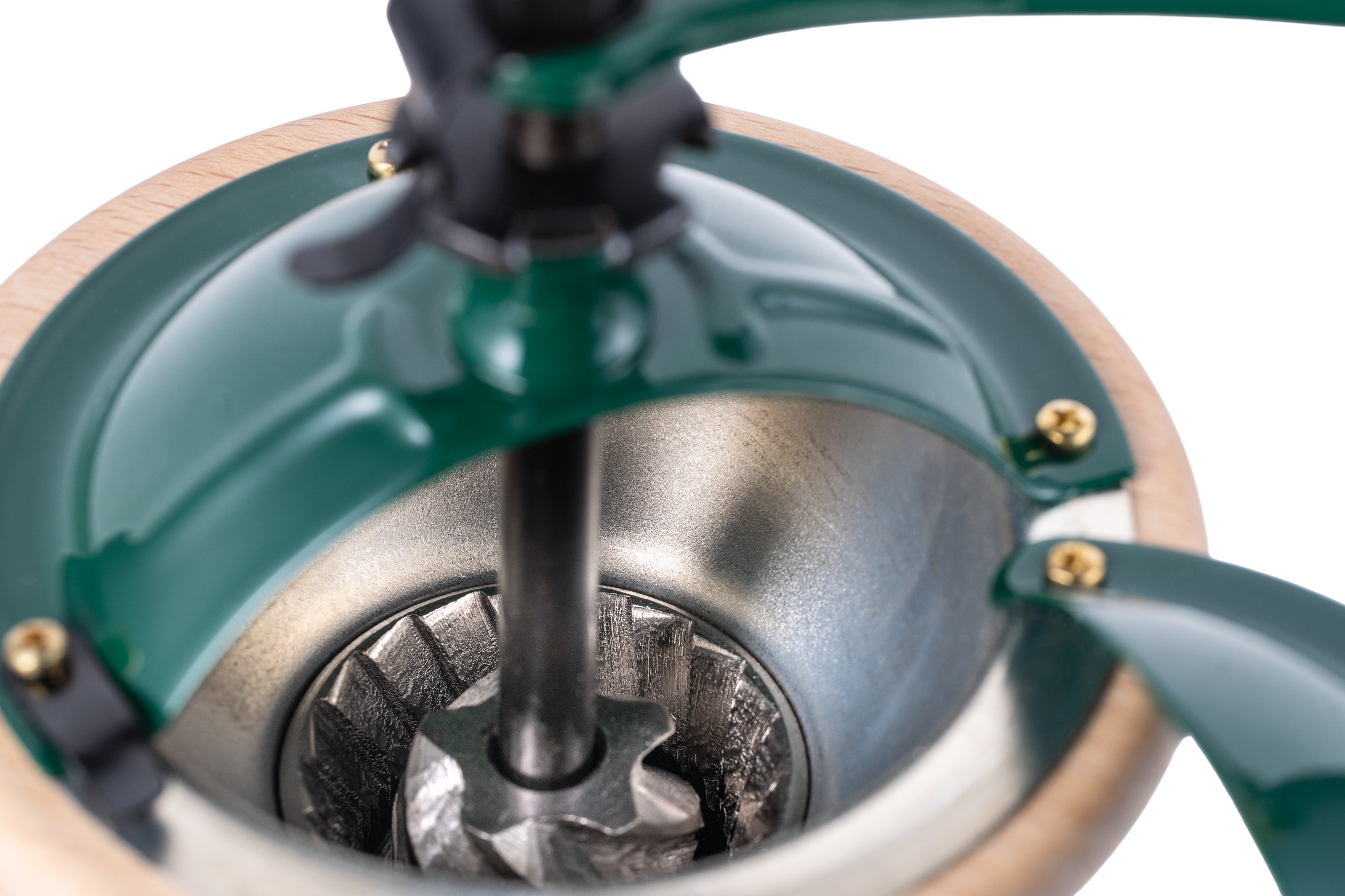 Med sin naturliga ljusa träfinish och gröna lackdetaljer erbjuder den en elegant och unik estetik som förhöjer varje miljö. Utrustad med de exklusiva koniska kvarnverken i härdat specialstål garanterar den en långsam och exakt malning som bevarar kaffets alla aromatiska egenskaper, för en smakupplevelse utöver det vanliga.