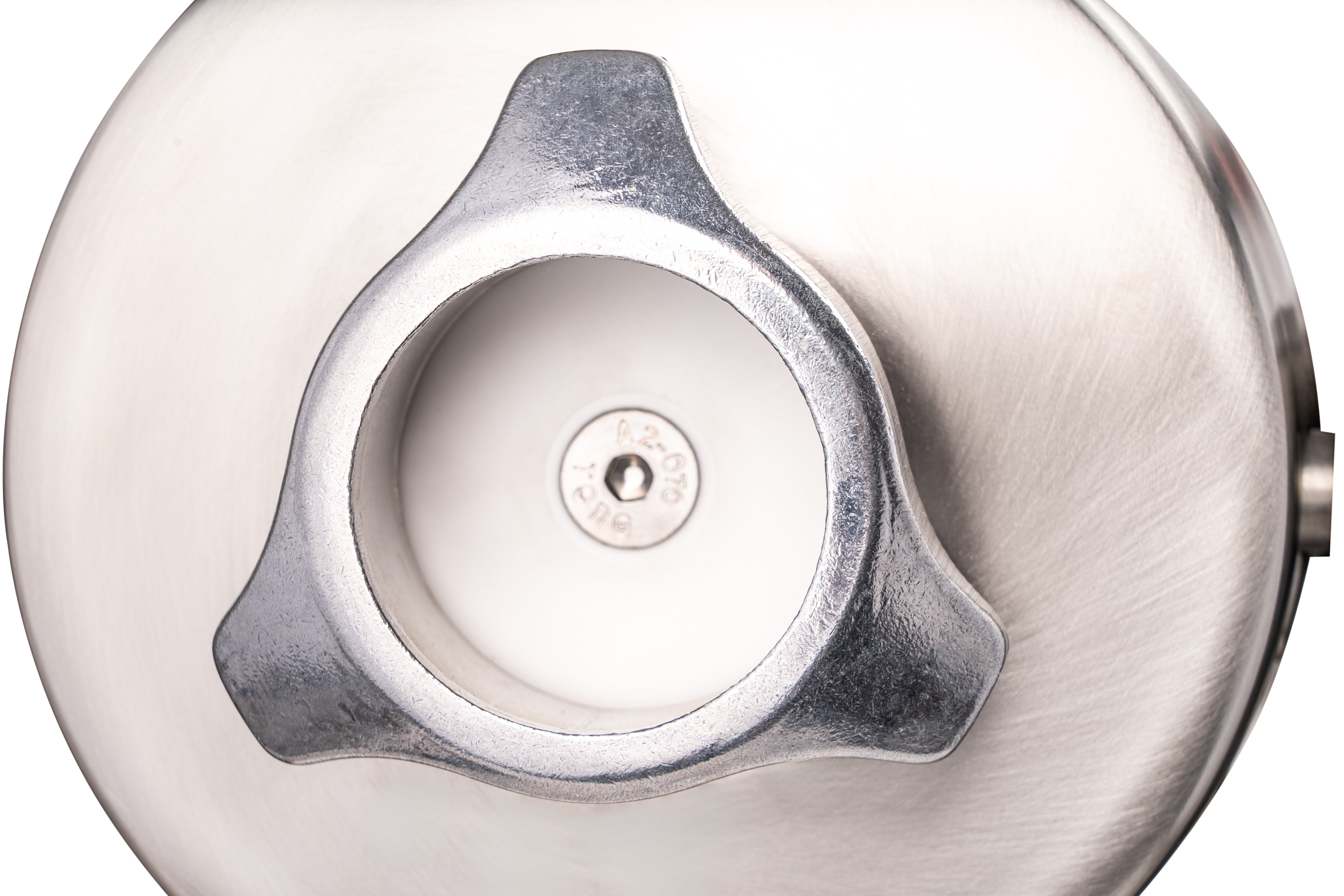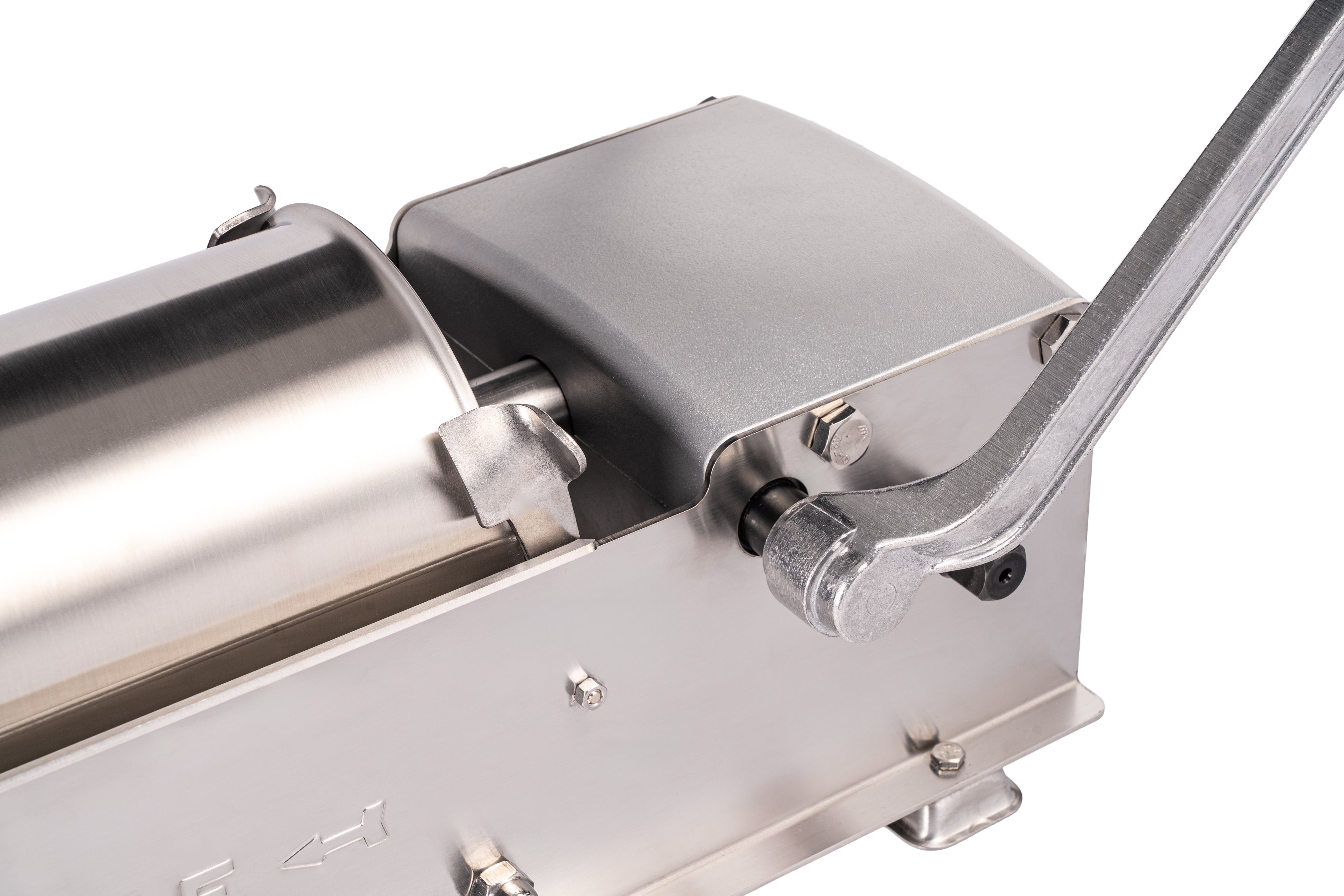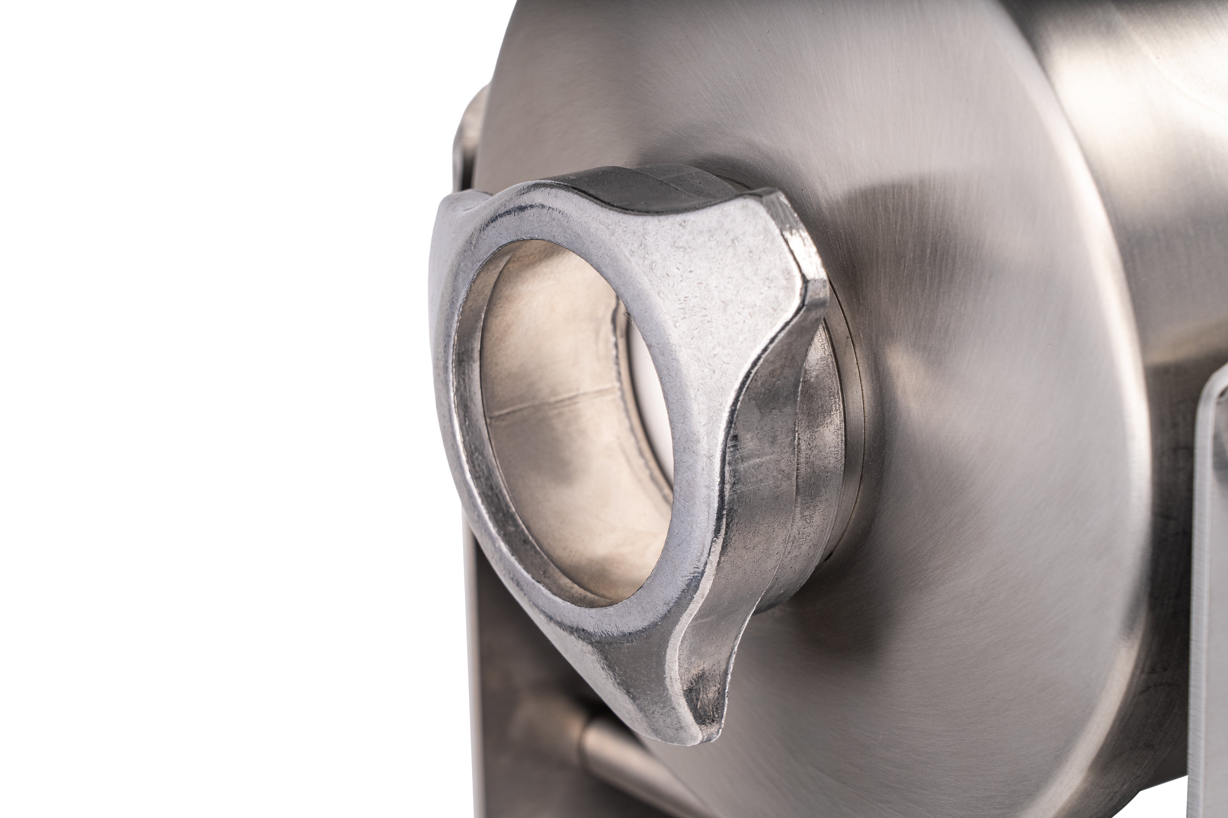 Konstruktion i rostfritt stål: Cylinder, sidopaneler, skruvar, kuggstång och fötter är alla tillverkade i rostfritt stål för att säkerställa robusthet, hygien och hållbarhet över tid